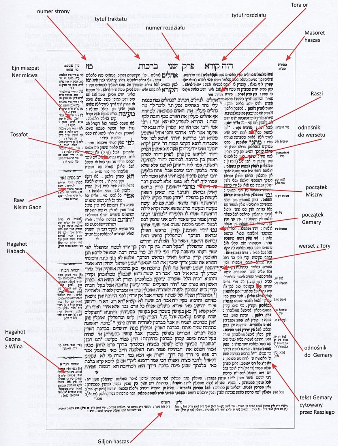 In this case it’s not actually the primary text that’s surrounded. Here that would be the Torah, but it is not reprinted in the Talmud. The central block on a typical Talmud page is comprised of the Mishnah (a commentary on the Torah) along with sugyot (passages) from Aramaic commentaries on the Mishnah called the Gemara. In this Polish graphic, the transition from Mishnah to Gemara is annoted on the right, “Miszny” and “Gemary.” So what appears as the primary text, in the center, isn’t actually primary: it’s already secondary (the Mishnah) and tertiary (the Gemara). The possibilities for fiction are dizzying: in fiction, this could be stories about someone who is absent from the text, in multiple layers, Rashomon-style.